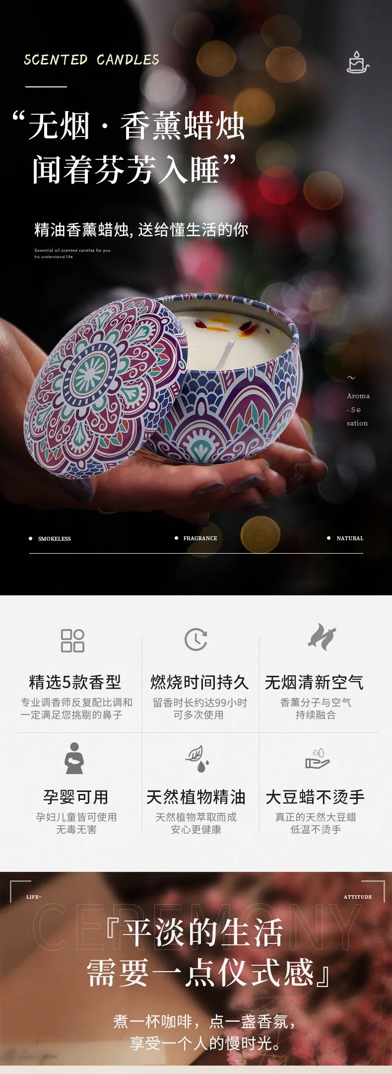 vela de aromaterapia estilo etnico sin humo, dormitorio, sala de estar, vela perfumada de cera de soja hecha a mano, decoración del hogar